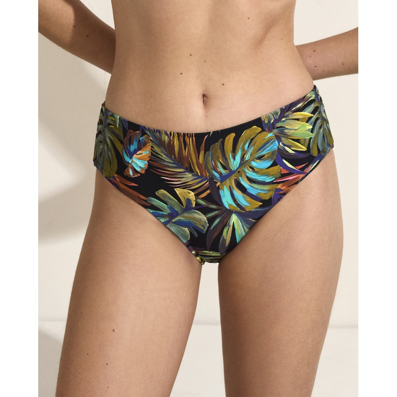 Cueca de biquíni de cintura alta com corte clássico. Transporte-se para uma aventura tropical com este design que o fará sentir-se vivo e cheio de energia.