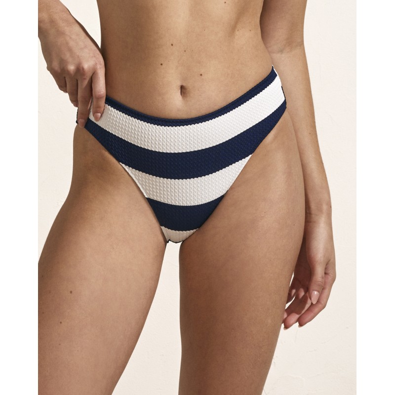 Cueca de biquíni com corte clássico. O seu clássico e intemporal estampado de marinheiro faz dela uma peça essencial em qualquer guarda-roupa de verão.