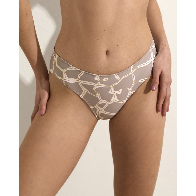 Cueca de biquíni clássica. Com um design feminino e original, este estampado é inspirado no Salar de Uyuni, onde cada figura geométrica representa a interseção entre o natural e o abstrato, criando uma paisagem visual fascinante.