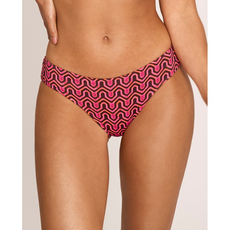 Cueca de biquíni clássica. Com um estampado geométrico que acrescenta dinamismo e um toque de verão. Uma opção contemporânea e sofisticada para esta estação. Feita com materiais reciclados.