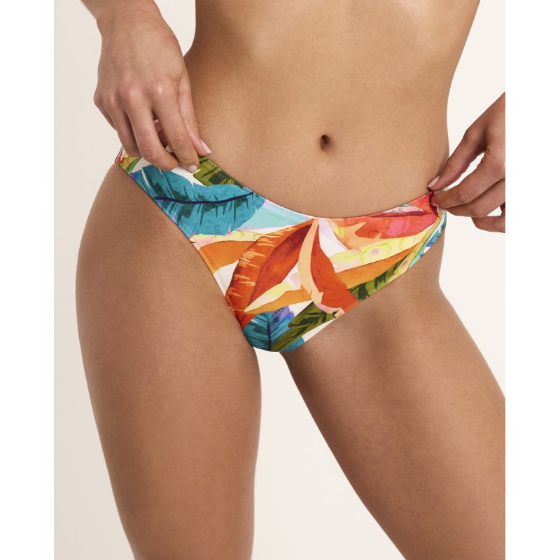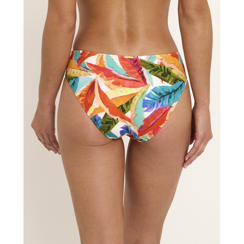 Cueca de biquíni de corte clássico. Inspirado na natureza exuberante, este estampado tropical é perfeito para banhos de sol e momentos à beira-mar.