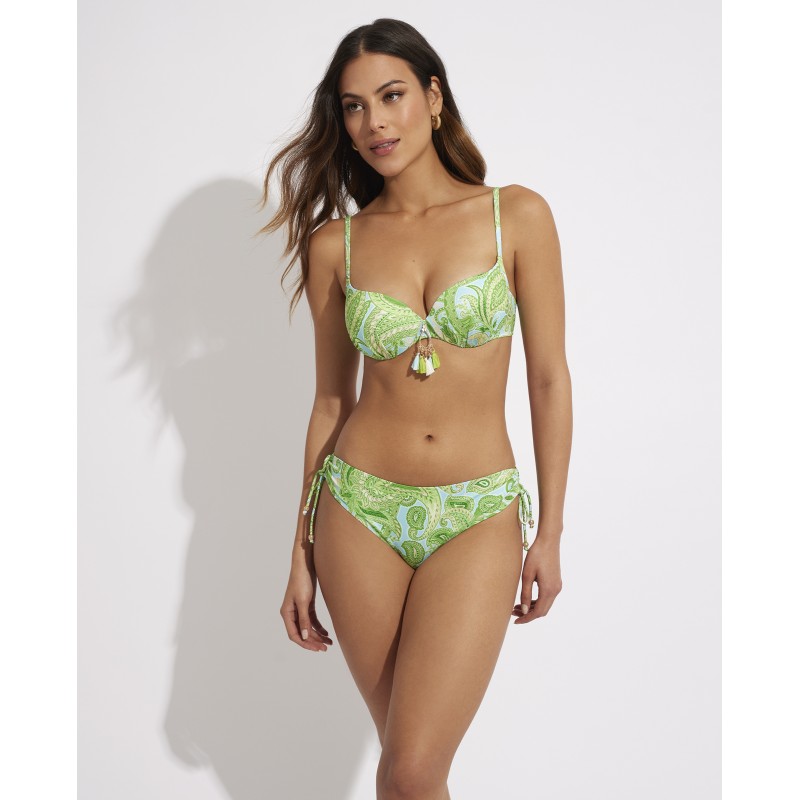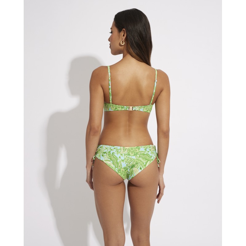 Cuenca de biquíni culotte. O seu design étnico confere-lhe um toque de originalidade e estilo único, tornando esta peça diferente das outras. Suas cores vibrantes destacam suas curvas de forma sutil, mas impactante.