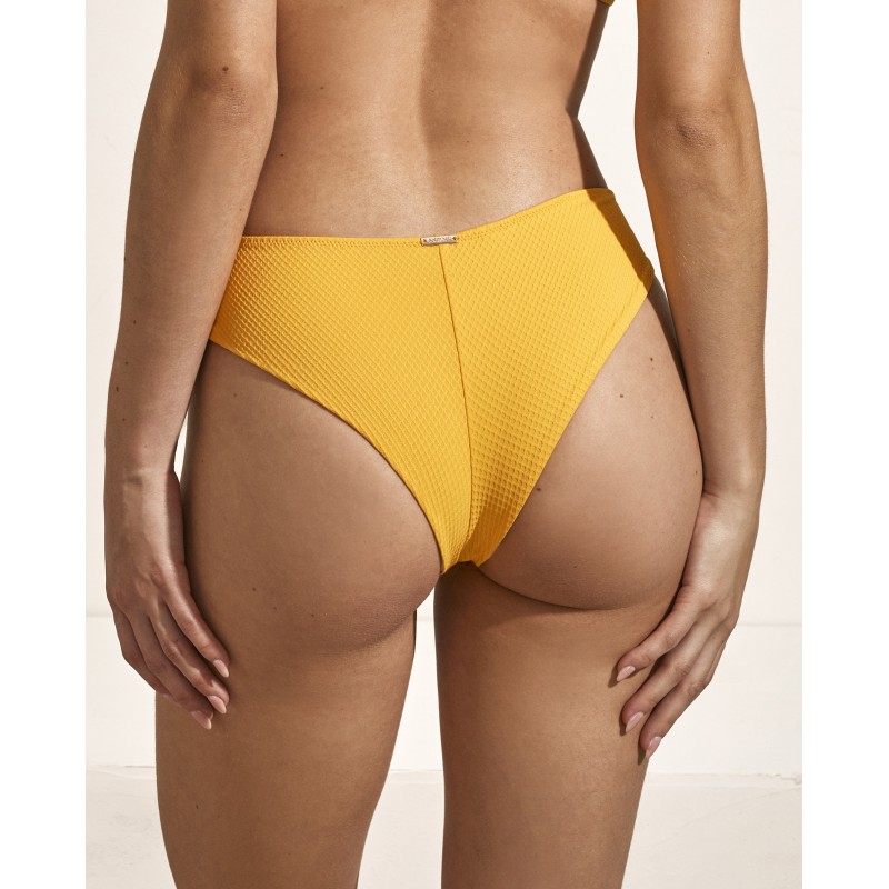 Cueca de biquíni culotte. Este design versátil é perfeito para quem quer uma peça que se adapte a uma variedade de ocasiões e estilos. O seu ajuste confortável e seguro permite-lhe desfrutar de atividades aquáticas sem preocupações, seja na praia ou na piscina. É certamente uma opção clássica, prática e elegante para o verão, ideal para estar bem vestida enquanto se diverte ao sol.
