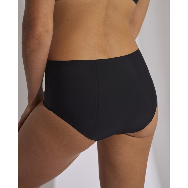 Cuenca menstrual de corte alto. Esta peça desenhada para ser usada durante o período menstrual é confeccionada com materiais absorventes que ajudam a prevenir vazamentos. É confortável, fácil de lavar e reutilizável, sendo uma opção sustentável e económica.