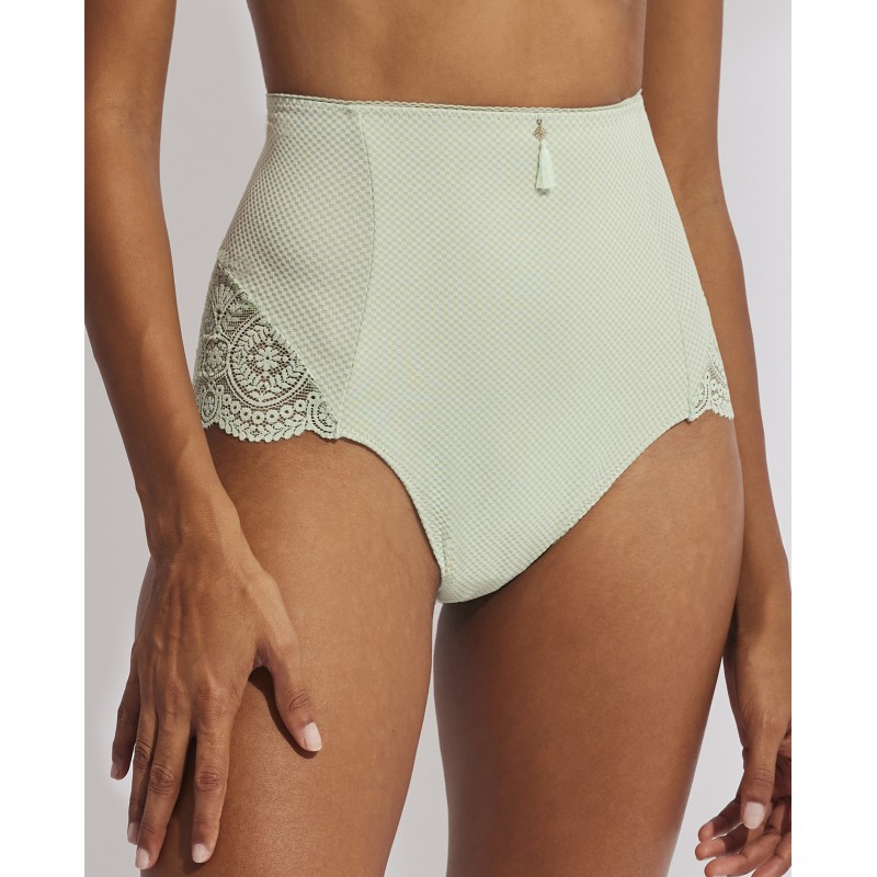 Cuenca clássica muito alta. O seu espetacular desenho em renda confere-lhe um estilo romântico e boémio ao mesmo tempo. Esta peça combina sensualidade, frescura e elegância, ideal para mulheres livres e autênticas.