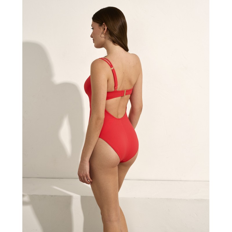 Fato de banho estilo bandeau assimétrico. Com bojo interior e sem aro. Este design versátil é perfeito para quem quer uma peça que se adapte a uma variedade de ocasiões e estilos. O seu ajuste confortável e seguro permite-lhe desfrutar de atividades aquáticas sem preocupações, seja na praia ou na piscina. É certamente uma opção clássica, prática e elegante para o verão, ideal para estar bem vestida enquanto se diverte ao sol.