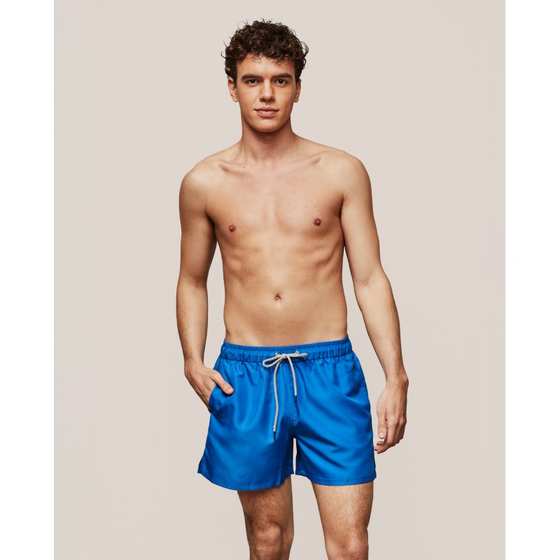 Fato de banho masculino clássico e monocromático. Uma peça essencial no guarda-roupa masculino desta estação.
