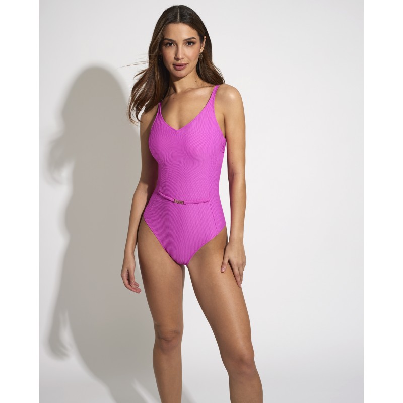 Fato de banho protético com decote em V. Sem armação e com bolso protético interno. Desenvolvido para mulheres que necessitam incorporar uma prótese após uma mastectomia ou mastectomia. Decote alto e alças largas para máximo conforto.