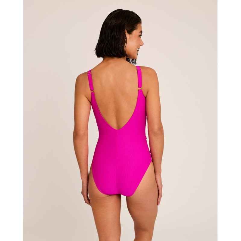 Fato de banho protético com decote em V. Sem aro e com bolso interior para prótese. Desenvolvido para mulheres que necessitam de prótese após mastectomia ou lumpectomia. Possui decote alto e alças largas para máximo conforto. O seu ajuste confortável e firme permite-lhe desfrutar de atividades aquáticas sem preocupações.