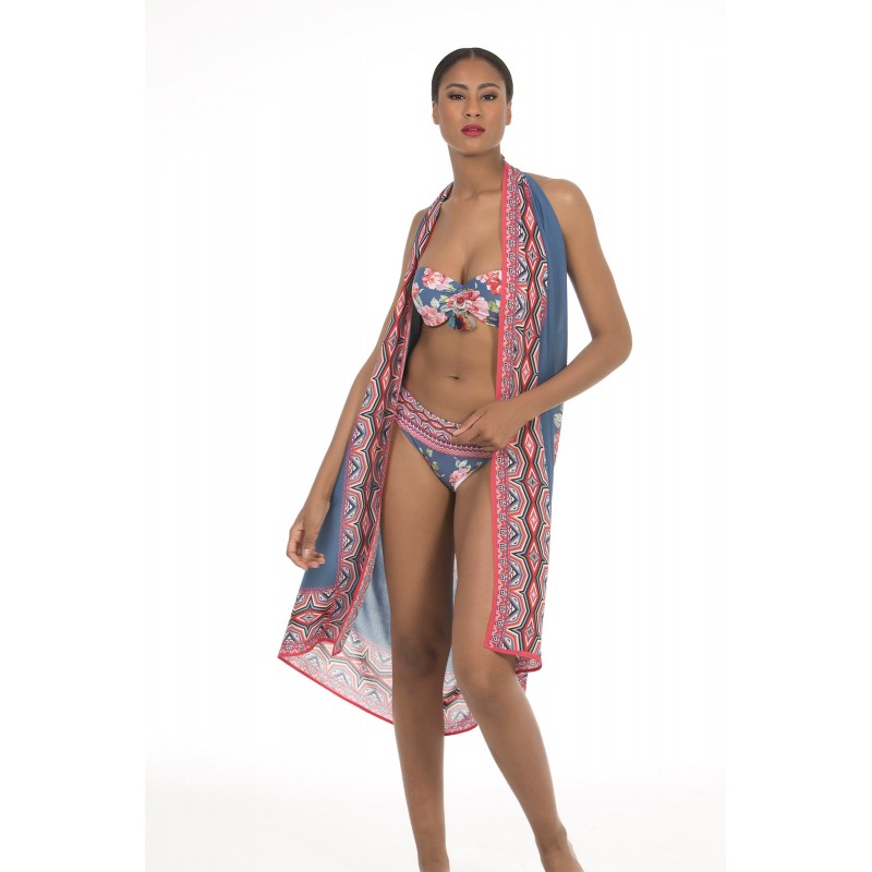 Lenço pareo macio e largo para utilizar de ambos modos. Perfeito para combinar com bikini ou fato de banho. Em azul.