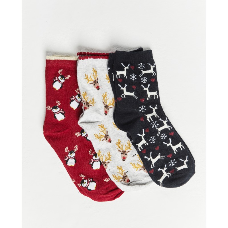 Embalagem com 3 pares de meias. Com padrões natalícios e muito quentes, são ideais para oferecer.