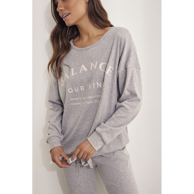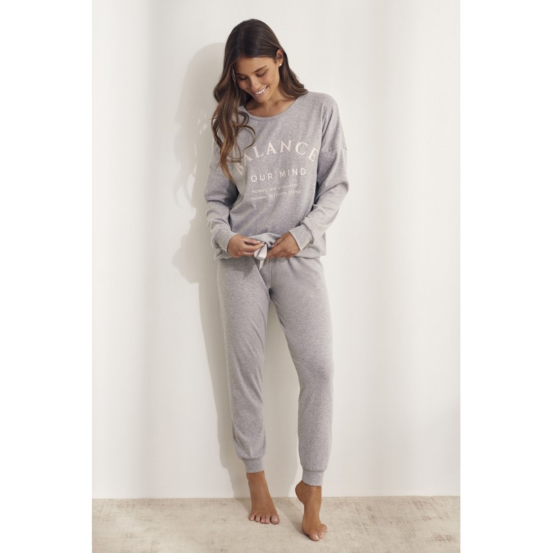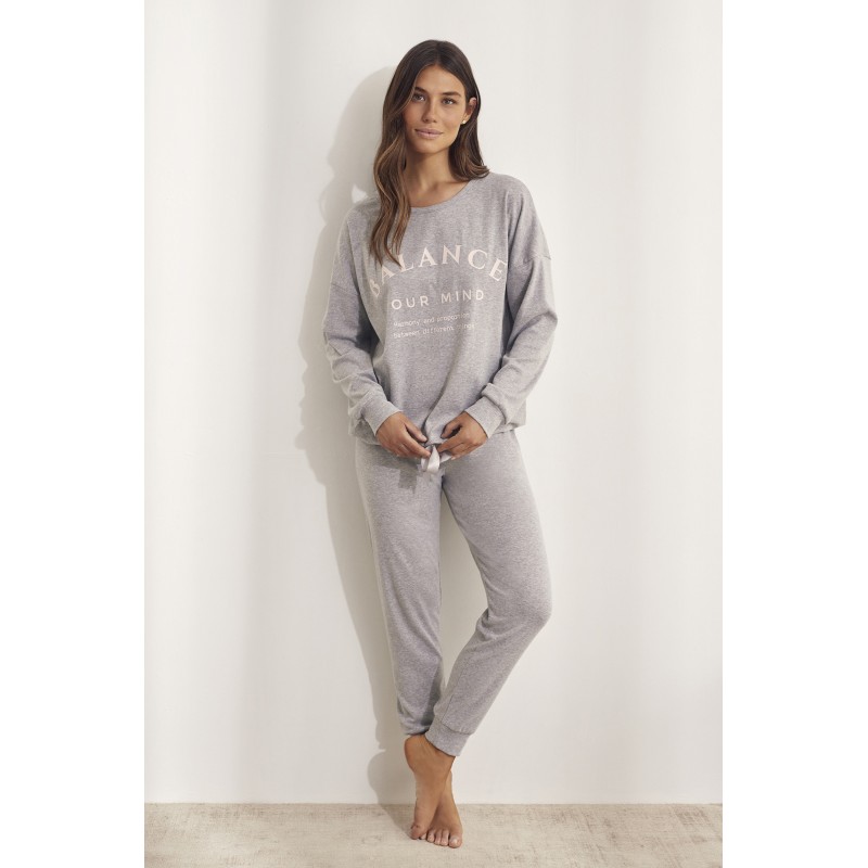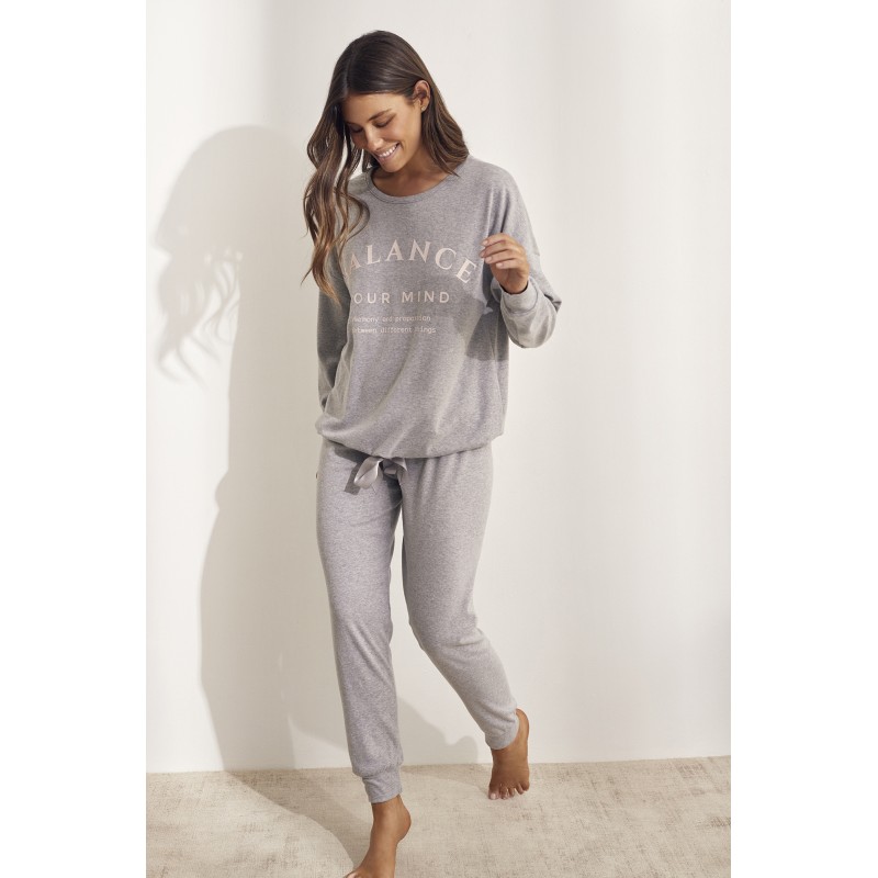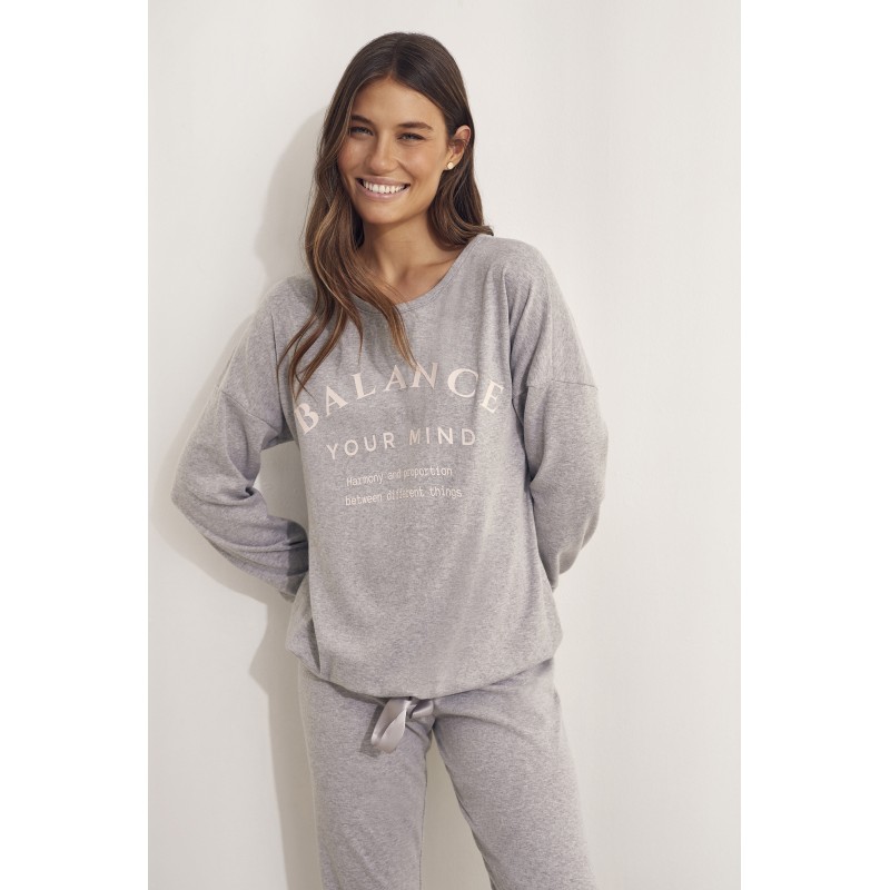Pijama completo com calça comprida e blusa manga longa. Corte clássico, design simples e máximo conforto.