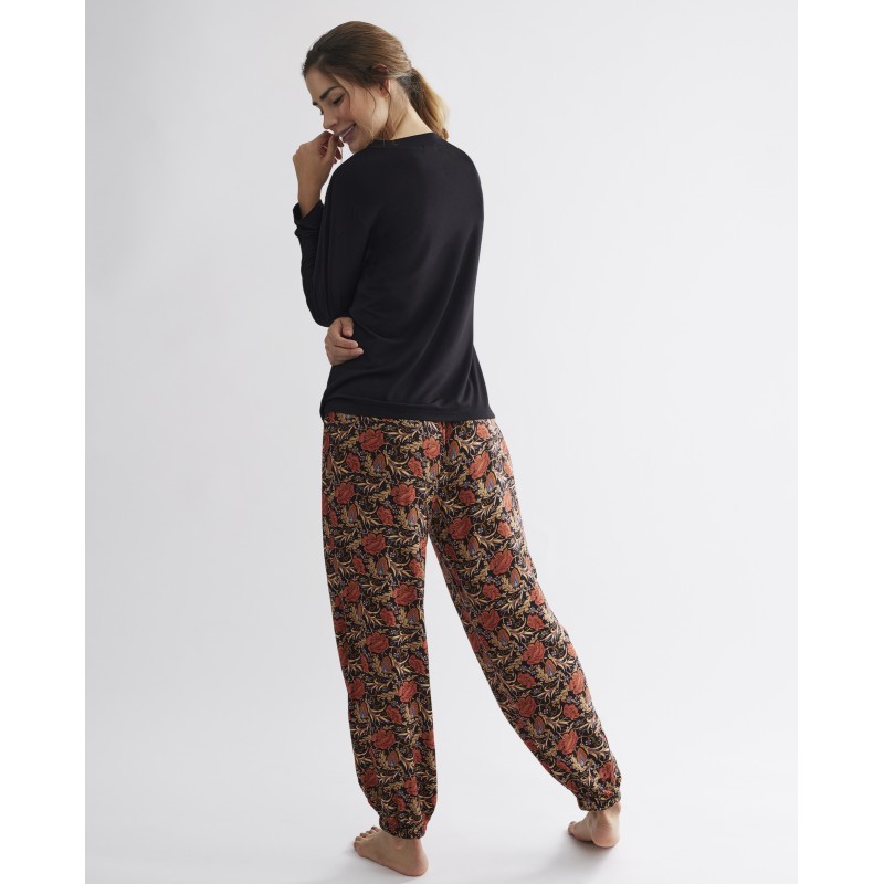 Pijama completo com calça comprida e top de manga comprida. Com um estampado floral muito feminino que garante uma experiência de sono confortável e agradável. Ideal para este inverno.