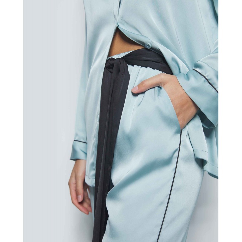 Pijama estilo camisa completo. Composto por top com fechamento frontal e calça comprida. Projetado para realçar a feminilidade e sensualidade da mulher, oferecendo um visual atraente e sedutor sem abrir mão do conforto.
