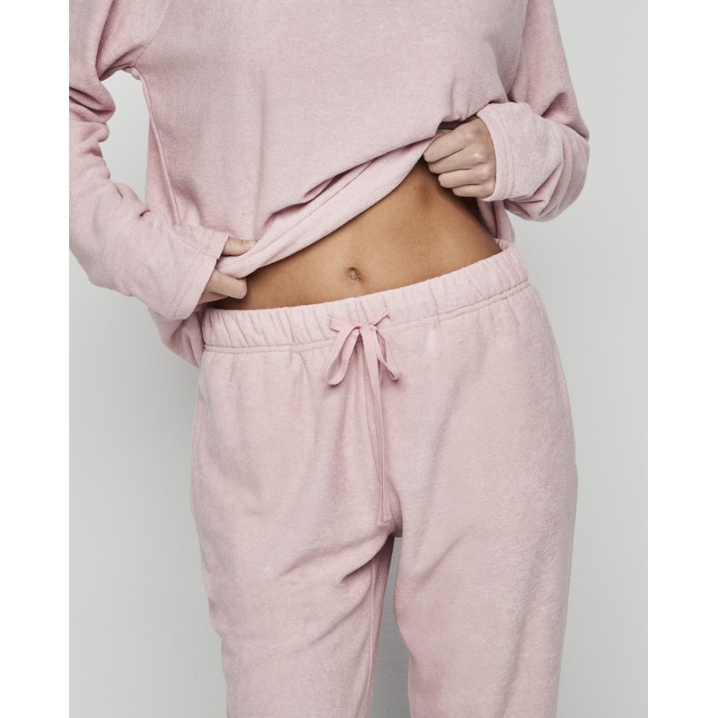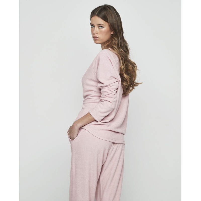 Pijama de senhora de duas peças. Feito de tecido extramacio, inclui uma blusa de manga comprida com gola redonda e calças compridas com bolsos e gravata ajustável. Uma peça pensada para envolver as suas noites em calor e conforto, porque não há sensação mais reconfortante do que se sentir em casa.