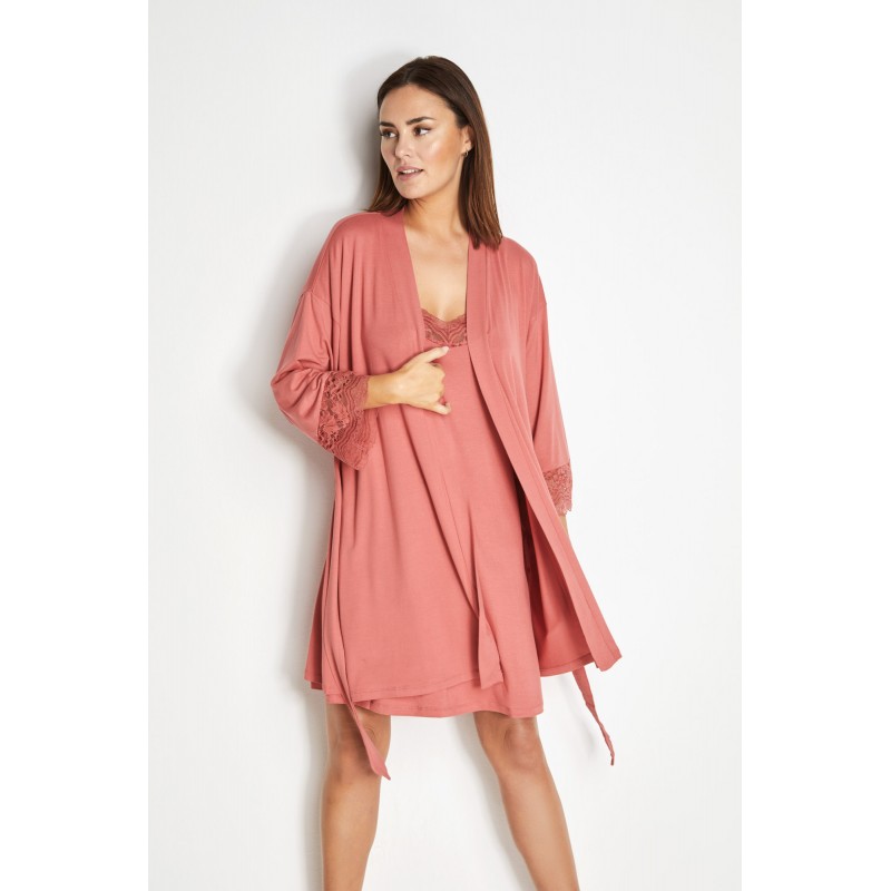 Robe com uma estética romântica e rústica com detalhes feitos à mão e rendas que a tornam uma peça de design única, atraente e feminina.