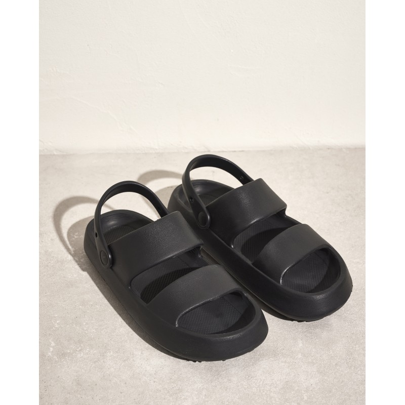 Sandálias de borracha pretas para completar o seu look. Ideal para o verão.