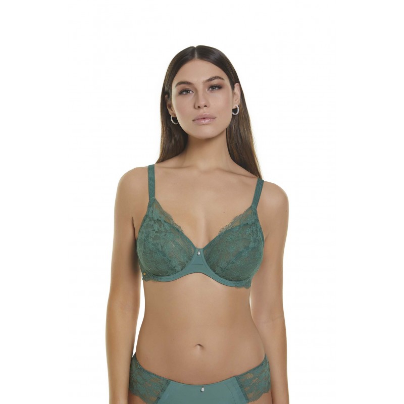 Soutien de capacidade. Efeito de controle envolvente. Ideal para tamanhos maiores. Um desenho de inspiração romântica cuja renda floral a torna uma peça ultra feminina e única.