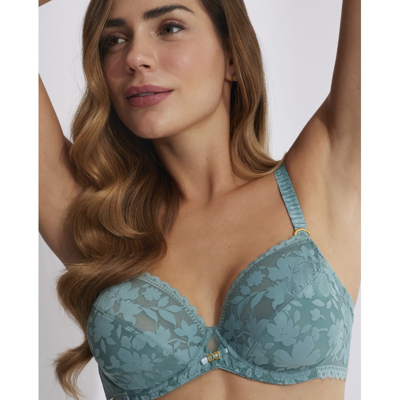 Soutien de capacidade de decote médio. Efeito de controle surround. Ideal para tamanhos maiores. Esta peça é uma promessa de momentos especiais, um toque de mistério e sedução que transforma o poder da feminilidade na sua forma mais refinada e cativante.