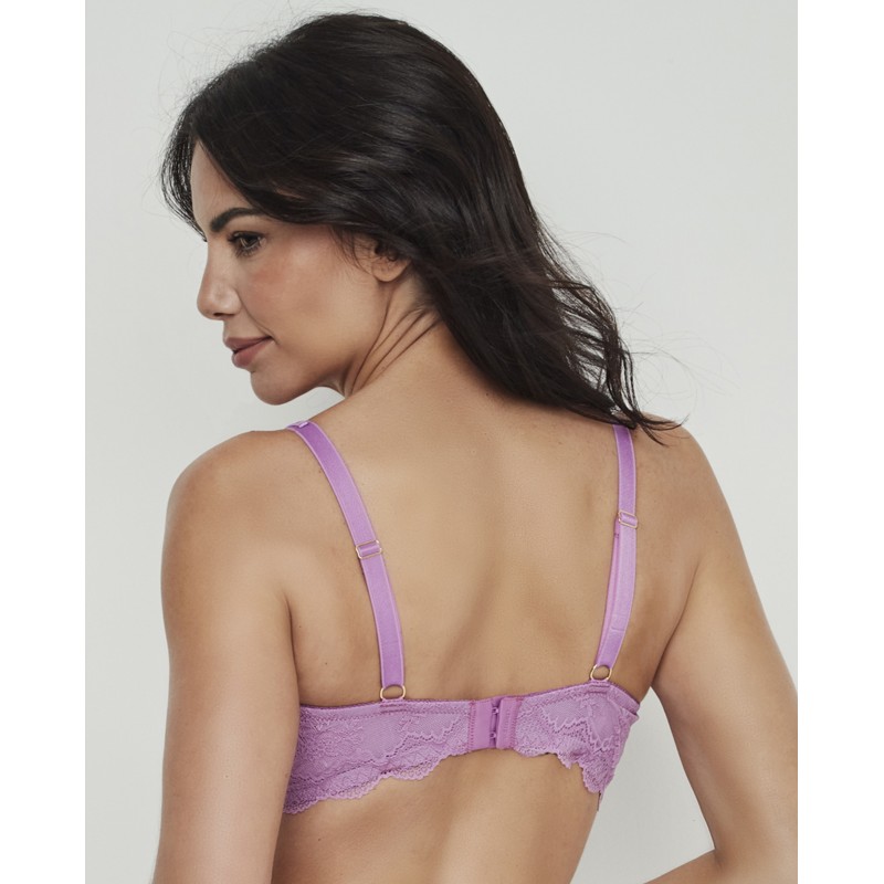 Soutien de cobertura total com decote médio e detalhes em renda. Oferece suporte envolvente e possui aro, faixa de base e barbatanas laterais. Não possui bojo. Ideal para tamanhos maiores. As costas são forradas com tule de compressão, e as alças e o fecho são ajustáveis para se adaptarem a diferentes tamanhos, garantindo um ajuste confortável e com boa sustentação. Esta peça combina elegância e conforto, criada para mulheres reais, livres e confiantes. Pertence à coleção Manuela, criada para realçar a beleza interior e celebrar a autenticidade de cada mulher. Para quem quer sentir-se não só bonita, mas também confortável e confiante na sua própria pele.