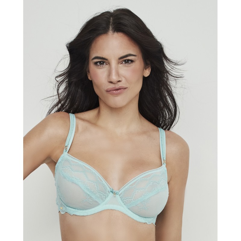 Soutien de cobertura total com decote médio e detalhes em renda. Oferece suporte envolvente e possui aro, faixa de base e barbatanas laterais. Não possui bojo. Ideal para tamanhos maiores. As costas são forradas com tule de compressão, e as alças e o fecho são ajustáveis ​​para se adaptarem a diferentes tamanhos, garantindo um ajuste confortável e com boa sustentação. Esta peça combina elegância e conforto, criada para mulheres reais, livres e confiantes. Pertence à coleção Manuela, criada para realçar a beleza interior e celebrar a autenticidade de cada mulher. Para quem quer sentir-se não só bonita, mas também confortável e confiante na sua própria pele.