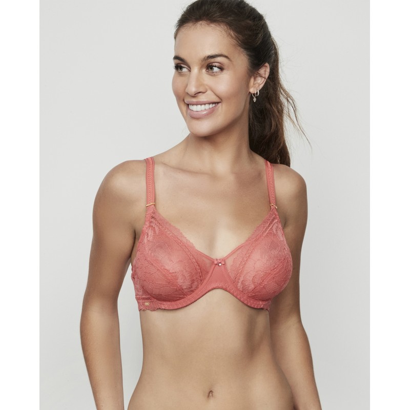 Soutien com decote médio e renda floral. Efeito de controlo surround. Possui anel, base e haste lateral. Não possui copo de espuma. Ideal para tamanhos maiores. As suas costas são forradas com tule controlo e têm duas medidas de largura das alças dependendo do tamanho, assim como o seu fecho de fecho, para se adaptar para proporcionar conforto e melhor suporte. Uma peça delicada e sofisticada. A coleção Agatha, à qual pertence, encarna a maturidade e o esplendor da marca, oferecendo peças que não só adornam, como transformam. Uma coleção com charme e carisma.