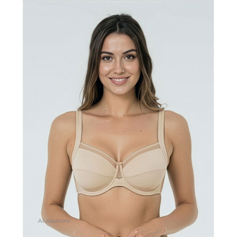 Soutien de grande capacidade súper confort. Com efeito control envolvente, sem espuma. Modela sem renunciar á comodidade. Sem marcar costuras, garante máxima segurança. Em pele.