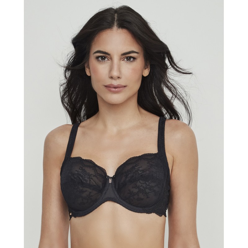 Soutien com cobertura total. Efeito de compressão envolvente. Possui aro, faixa de base e barbatanas laterais. Sem bojo. Ideal para tamanhos maiores. Inclui uma cunha exterior que suporta e centra o busto. As costas são forradas com tule de compressão e as alças e o fecho são ajustáveis ​​para se adaptarem a diferentes tamanhos, proporcionando conforto e suporte ideal. Uma peça que alia elegância e conforto, criada para mulheres reais, livres e confiantes. Parte da coleção Manuela, criada para realçar a beleza interior e celebrar a autenticidade de cada mulher. Para quem quer sentir-se não só bonita, mas também confortável e confiante na sua própria pele.