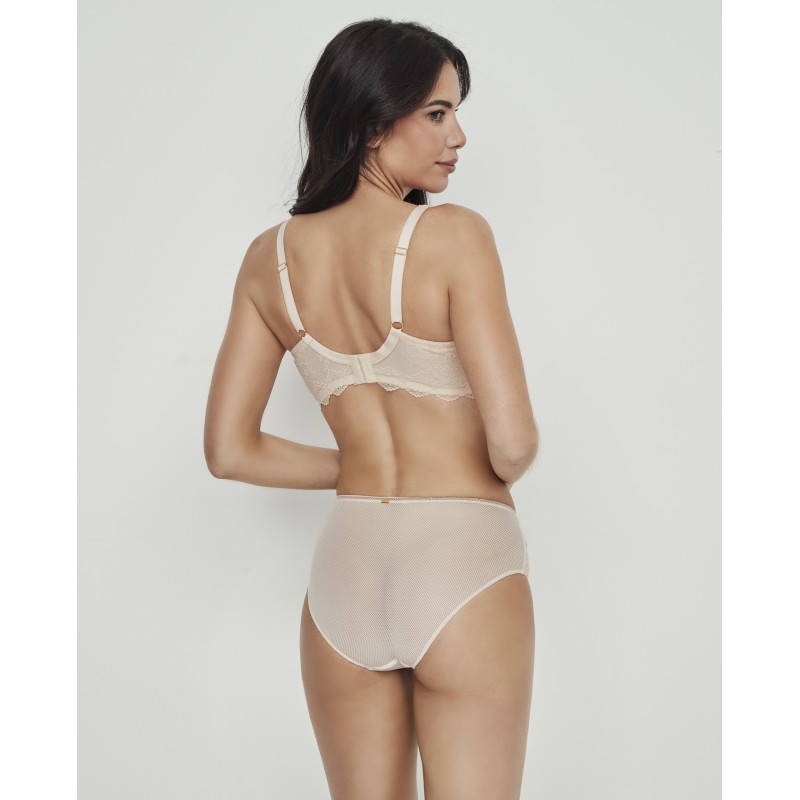 Soutien com cobertura total. Efeito de compressão envolvente. Possui aro, faixa de base e barbatanas laterais. Sem bojo. Ideal para tamanhos maiores. Inclui uma cunha exterior que suporta e centra o busto. As costas são forradas com tule de compressão e as alças e o fecho são ajustáveis ​​para se adaptarem a diferentes tamanhos, proporcionando conforto e suporte ideal. Uma peça que alia elegância e conforto, criada para mulheres reais, livres e confiantes. Parte da coleção Manuela, criada para realçar a beleza interior e celebrar a autenticidade de cada mulher. Para quem quer sentir-se não só bonita, mas também confortável e confiante na sua própria pele.