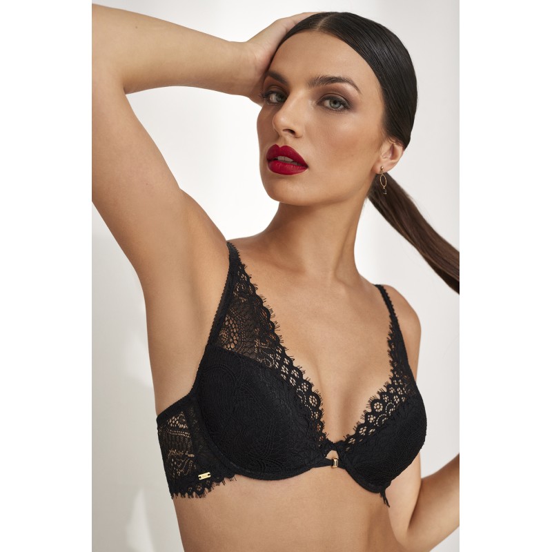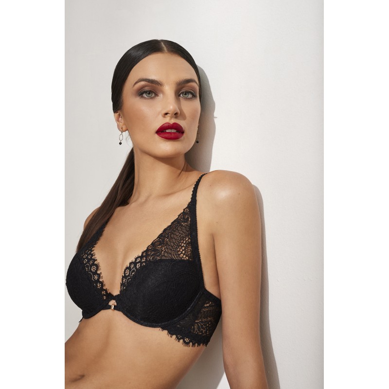 Soutien decote profundo. Forma e realça. Com um design requintado inspirado em uma mulher elegante, sedutora e ousada. Sua renda floral de origem europeia e efeito fosco gera um efeito muito lisonjeiro para a pele.
