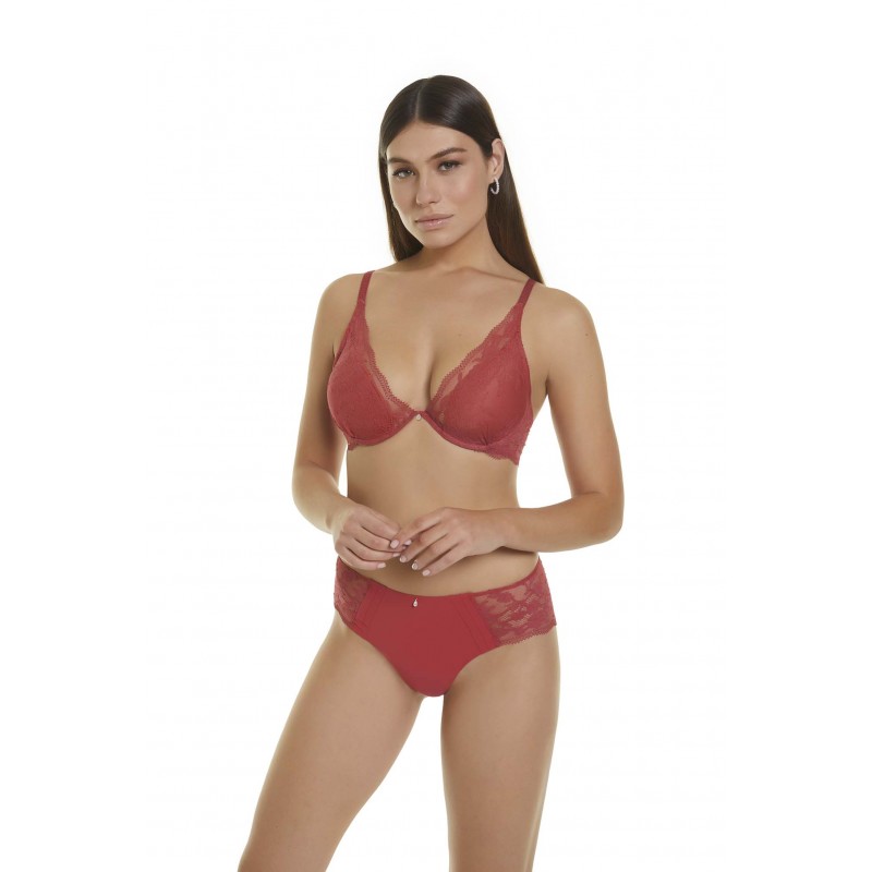 Soutien decote profundo com aro contínuo. Um design jovem e de inspiração romântica. A sua renda floral torna-a uma peça ultra feminina e única.