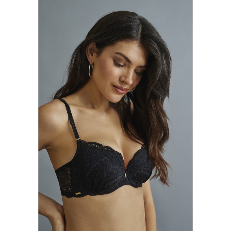 Soutien modelador essencial. Efeito surround. Estética muito cuidada e ultra feminina. A sua renda evoca a natureza das folhas, tornando-a uma peça de roupa elegante e ousada.
