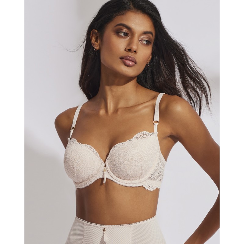 Soutien modelador essencial. Efeito surround. O seu espetacular desenho em renda confere-lhe um estilo romântico e boémio ao mesmo tempo. Esta peça combina sensualidade, frescura e elegância, ideal para mulheres livres e autênticas.