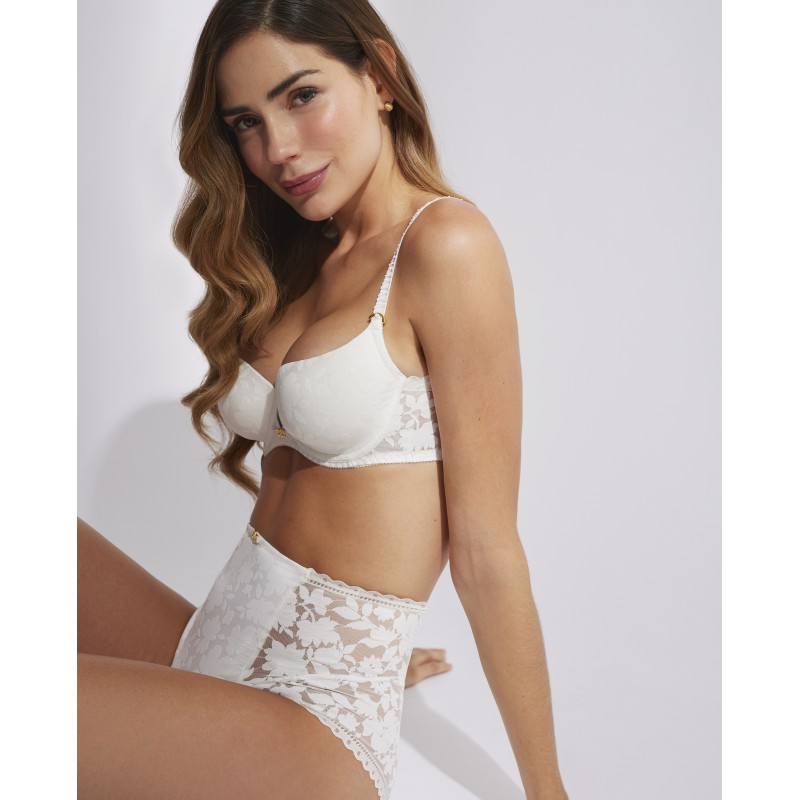 Soutien com copo modelador. Efeito envolvente. Esta peça é uma promessa de momentos especiais, um toque de mistério e sedução que transforma o poder da feminilidade na sua forma mais refinada e cativante.