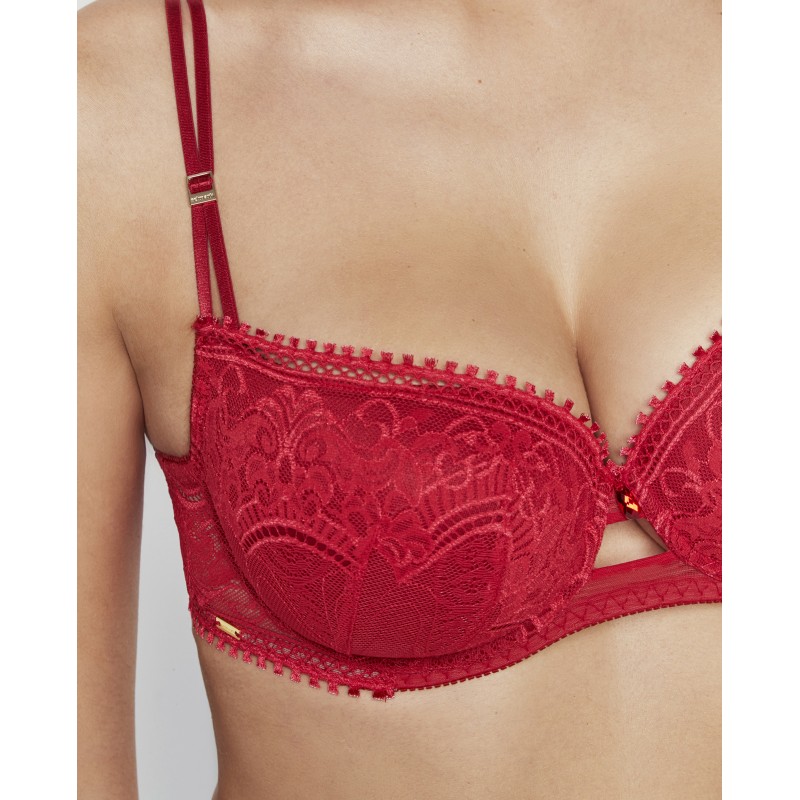Soutien modelador essencial. O seu bojo de espuma e aro criam um efeito envolvente e modelador. A sua estética marcante presta homenagem às noites em que a elegância e a sensualidade são o centro das atenções. Concebida para deixar uma impressão duradoura, esta peça faz parte da coleção Aurum, criada em colaboração com Pilar Rubio para celebrar o nosso 50º aniversário.