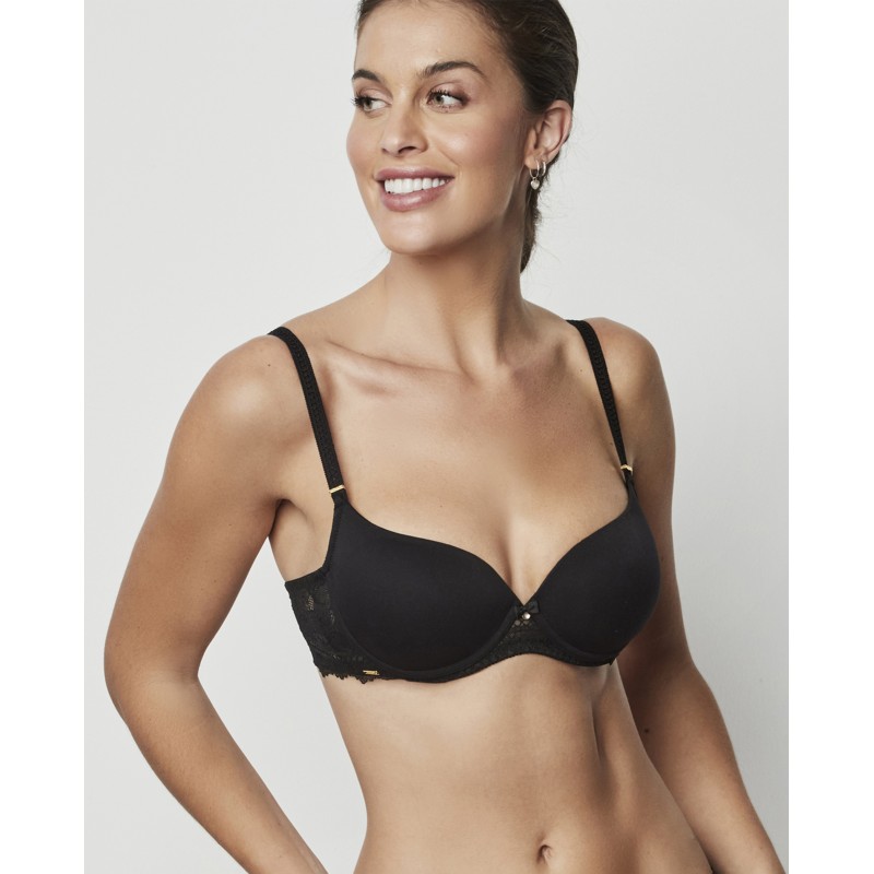 Soutien liso modelador de copa com detalhes florais em renda nas costas. Possui aros e copas em espuma. Efeito surround. Possui três medidas possíveis de largura das alças consoante o tamanho, como é o caso do seu fecho de fecho. Tudo isto para garantir um grande conforto e um bom suporte. A fivela das tiras é plana, não volumosa. Uma peça delicada e sofisticada. A coleção Agatha, à qual pertence, encarna a maturidade e o esplendor da marca, oferecendo peças que não só adornam, como transformam. Uma coleção com charme e carisma.