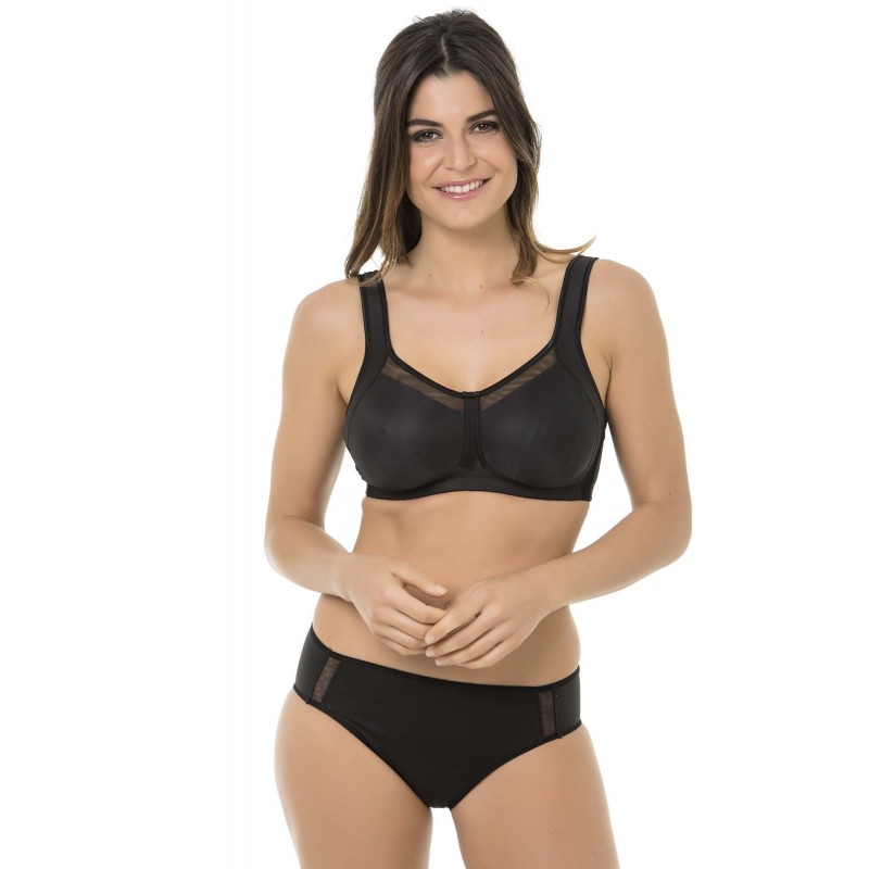 Soutien confort da Linha Selmark Care. Sem aros, sem espuma, com alças acolchoadas e com bolso interno, especial para próteses. Elaborado para mulheres que após uma intervenção de mastectomía o tumorectomía necessitam incorporar uma prótese. Em preto.