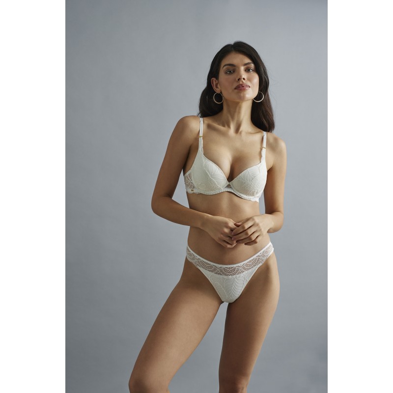 Soutien push up. Firma o peito e aumenta até um tamanho. Estética muito cuidada e ultra feminina. A sua renda evoca a natureza das folhas, tornando-a uma peça de roupa elegante e ousada.
