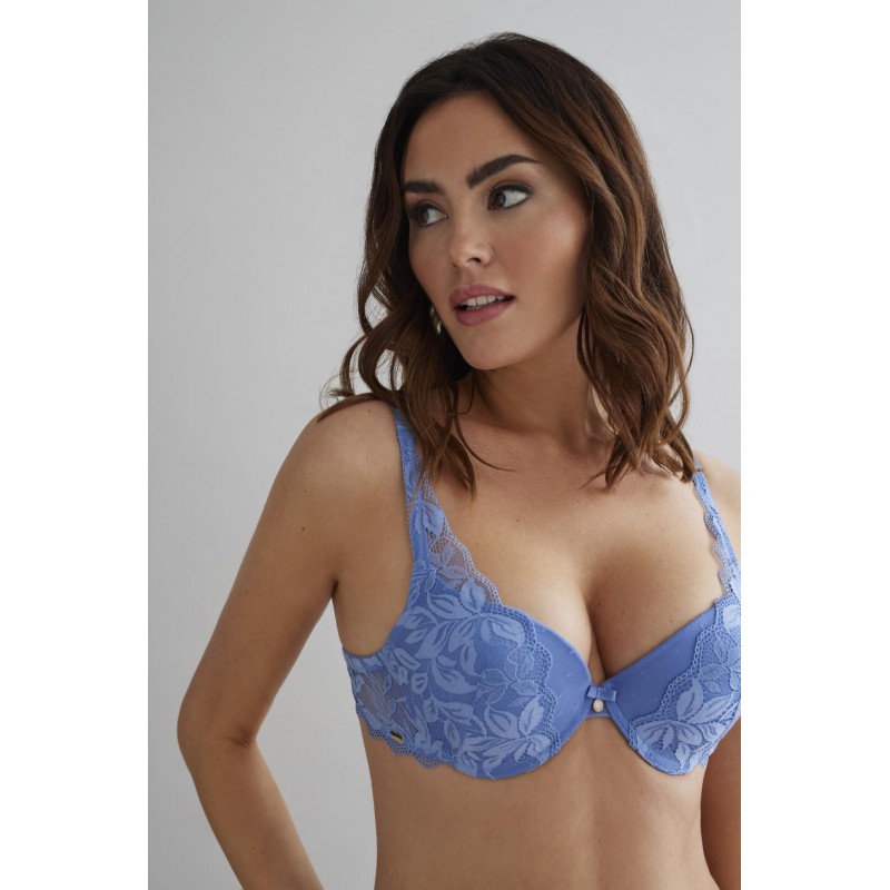 Soutien push-up. Firma o peito e aumenta até um tamanho. Estética muito atraente e com caráter. Sua renda floral o torna um design muito atual e jovem.