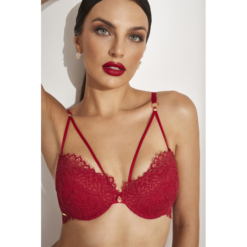 Soutien push-up. Firma o peito e aumenta até um tamanho. Com um design requintado inspirado em uma mulher elegante, sedutora e ousada. Sua renda floral de origem europeia e efeito fosco gera um efeito muito lisonjeiro para a pele.