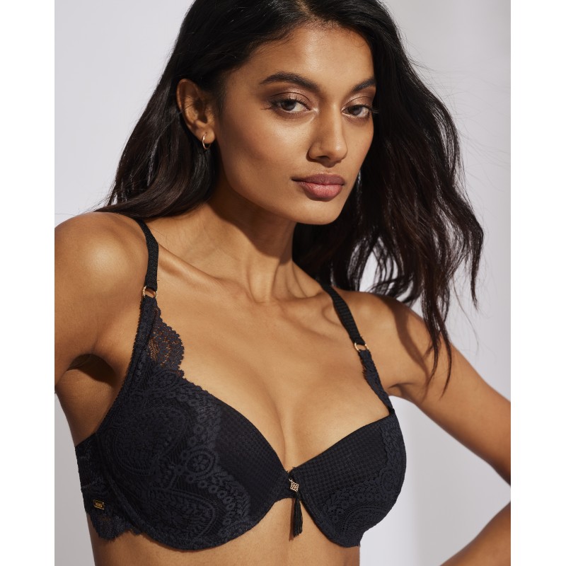 Soutien push up. Firma o peito e aumenta até um tamanho. O seu espetacular desenho em renda confere-lhe um estilo romântico e boémio ao mesmo tempo. Esta peça combina sensualidade, frescura e elegância, ideal para mulheres livres e autênticas.