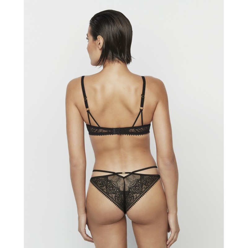 Soutien push-up com aro e copa em espuma. Este modelo refirma o busto e aumenta o volume do peito até um tamanho. A sua renda ousada e requintada e o seu design transparente captam a essência da sofisticação e do glamour. Esta peça é uma homenagem às noites que marcam. O seu design faz parte da coleção Aurum, criada em colaboração com Pilar Rubio para celebrar o nosso 50º aniversário.