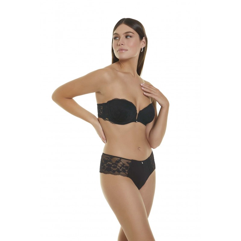 Soutien com alças removíveis. Com espuma pré-formada e anel. Enfatiza o peito e garante uma boa aderência evitando o efeito de deslizamento indesejado. Um design jovem e de inspiração romântica. A sua renda floral torna-a uma peça ultra feminina e única