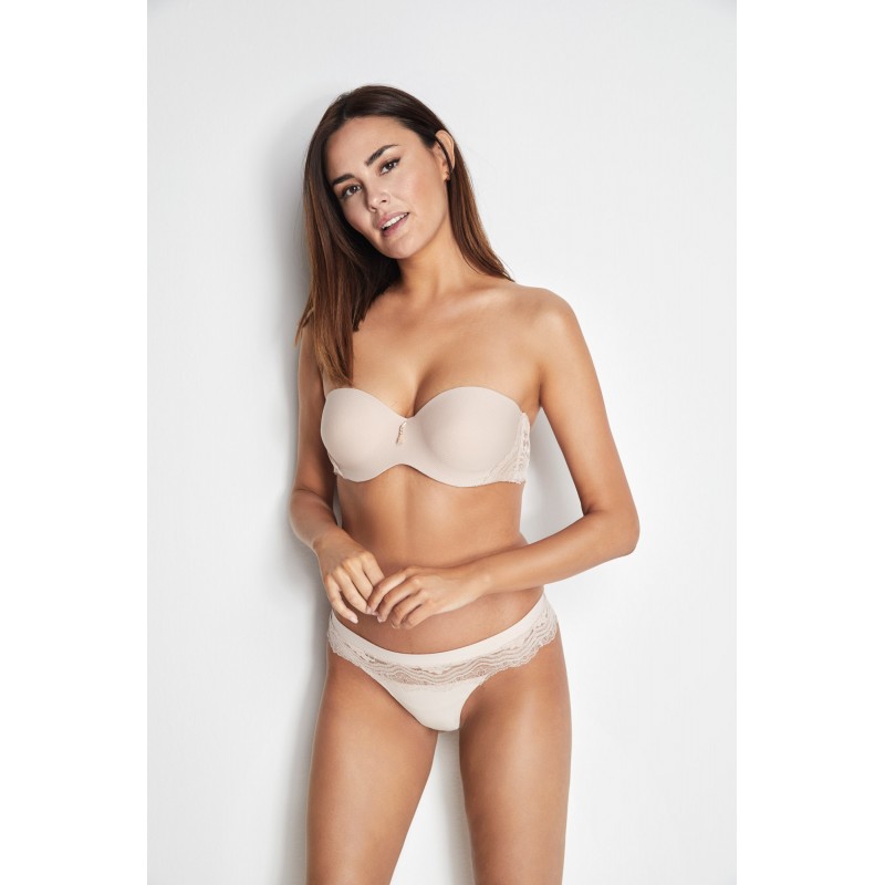 Soutien com alças removíveis. Com espuma pré-formada e aro. Valoriza o peito e garante boa sustentação, evitando derrapagens. Com uma estética romântica e rústica com detalhes feitos à mão e rendas que a tornam uma peça de design única, atraente e feminina.