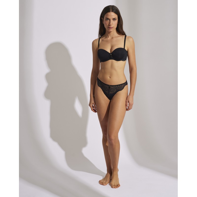 Soutien com alças removíveis. Com espuma pré-formada e anel. Valoriza o peito e garante um bom suporte, evitando o indesejado efeito de deslizamento. O seu espetacular desenho em renda confere-lhe um estilo romântico e boémio ao mesmo tempo. Esta peça combina sensualidade, frescura e elegância, ideal para mulheres livres e autênticas.