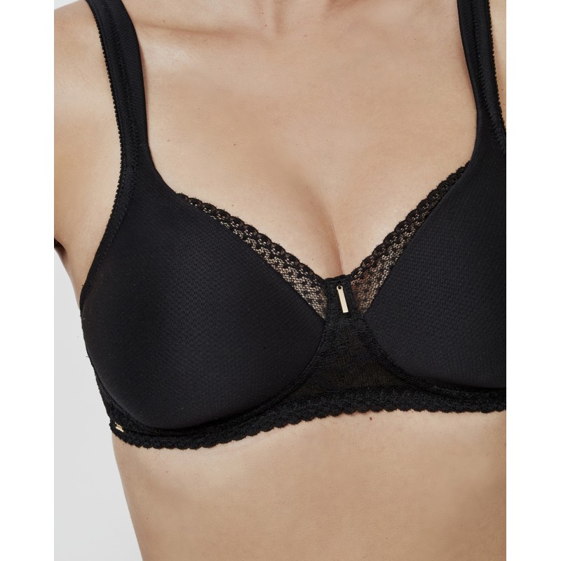 Soutien sem aro, com cobertura total, decote alto e pequenos detalhes em renda. Possui bojos de espuma. O seu interior é forrado em algodão e possui um bolso interior para prótese, concebido para mulheres que necessitam de uma prótese após mastectomia ou lumpectomia. As alças vêm em duas larguras, dependendo do tamanho, assim como o fecho de colchete. Estas alças são acolchoadas para máximo conforto. A coleção Malitzia, à qual pertence, representa uma dança perfeita entre o delicado e o ousado.