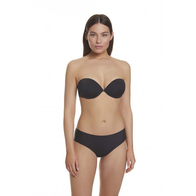 Soutien super push up sem alças com aro contínuo. Aprimore o peito e aumente em até dois tamanhos. Um básico que garante conforto.