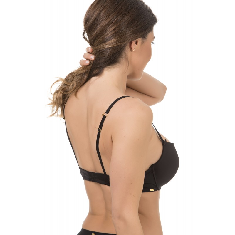 Soutien SuperBra com recheio duplo. Reafirma o peito e aumenta até dois tamanhos. Efeito segunda pele. Em preto.