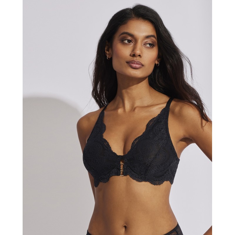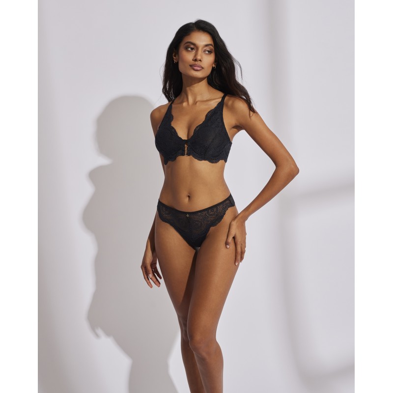 Soutien triangular sem aro e com copa de espuma. Oferece conforto extra. O seu espetacular desenho em renda confere-lhe um estilo romântico e boémio ao mesmo tempo. Esta peça combina sensualidade, frescura e elegância, ideal para mulheres livres e autênticas.