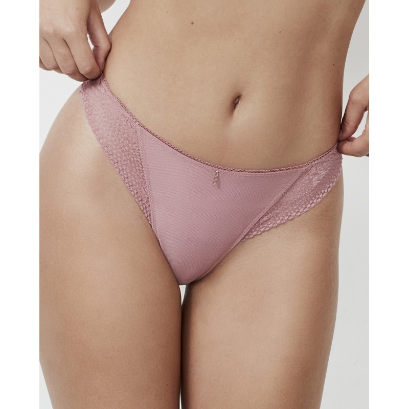 Cuecas tanga combinadas com renda floral. A coleção Malitzia, à qual pertence, representa uma dança perfeita entre o delicado e o ousado.